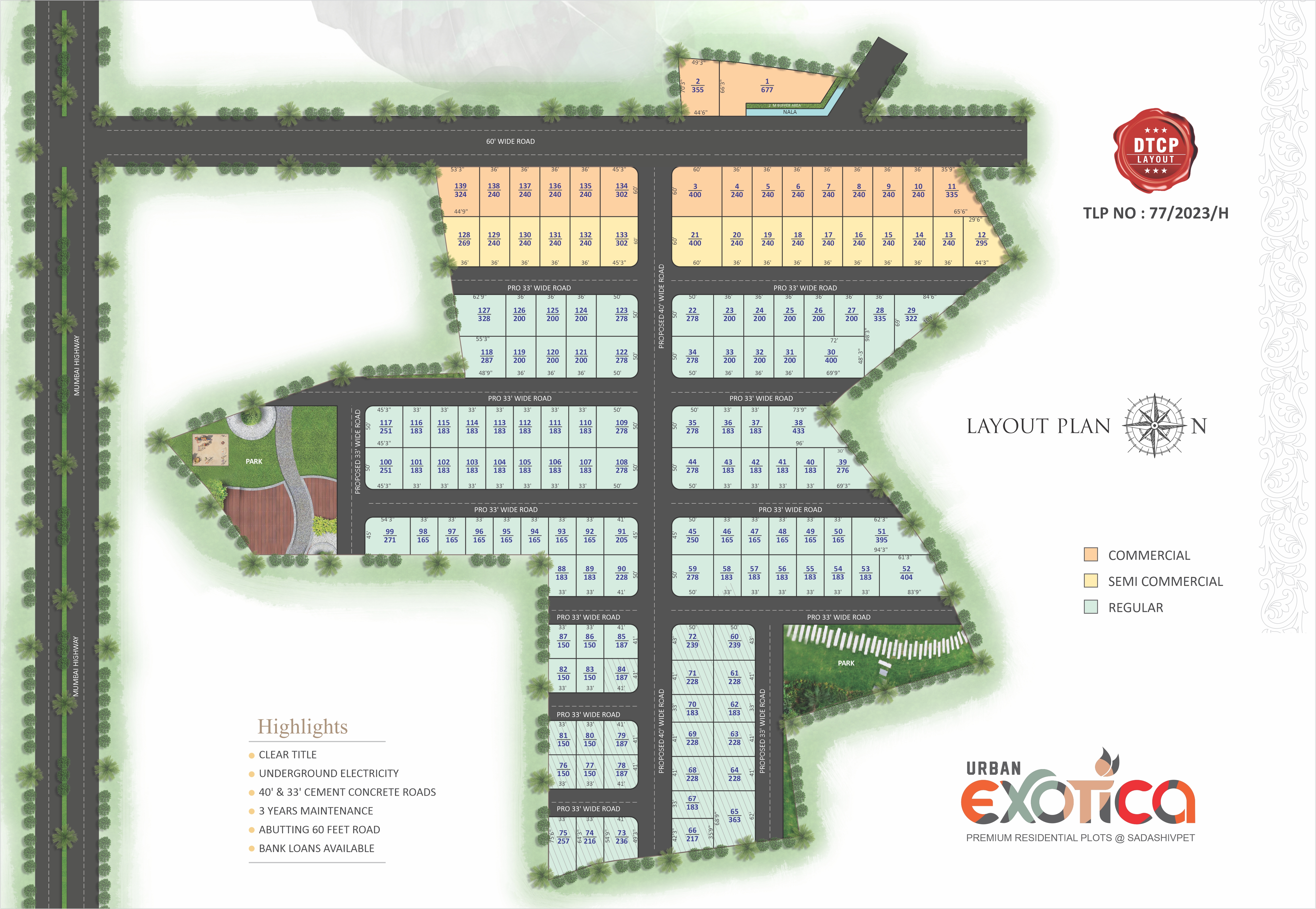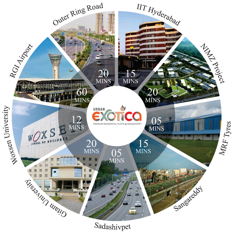 URBAN EXOTICA is our Proposed 10.5 Acres lush green living community is a PREMIUM RESIDENTIAL PLOT in Sadashivpet Hyderabad on Mumbai National Highway (NH65), which rise above Hyderabad, are a community of residential plots with first-rate amenities that have been created to give residents comfort and elegance. Close to nature and equipped with contemporary home comforts, we offer distinct amenities such as